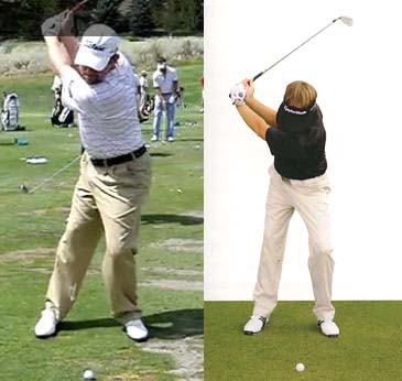 Consider Tiger Woods and Adam Scott at the end-backswing position.