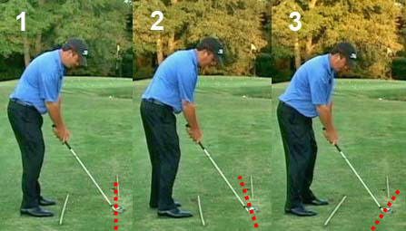 Sean Foley demonstrating his steeper shoulder turn action - capture image from his DVD [1]
