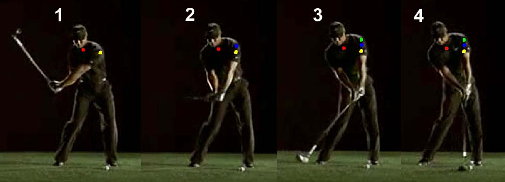 Image 1 shows Rory McIlroy at the end-backswing (P4) position - note that he has a small degree of left lateral bend due to his use of an *arch-extension maneuver during the P3 to P4 time period.(* I discussed the biomechanical phenomenon of an arch-extension maneuver in this you-tube video - http://www.youtube.com/watch?v=BPd5hSGuikg )