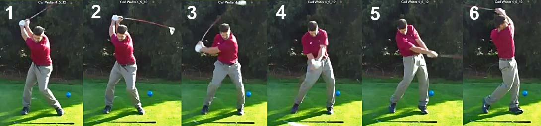 Here is a series of capture images showing Jamie Sadlowski's center-loading technique of performing the pelvic motion during both his backswing and downswing.